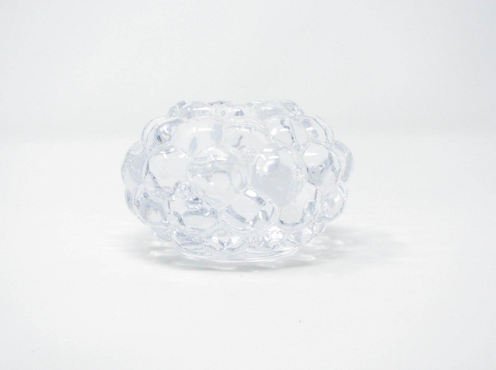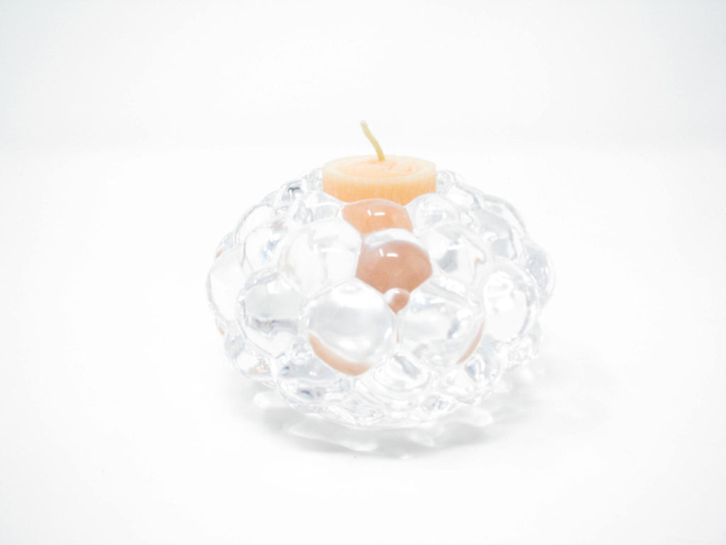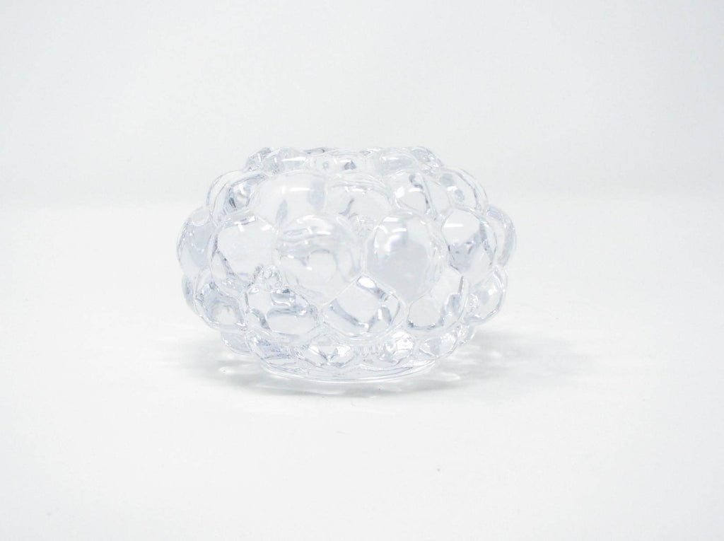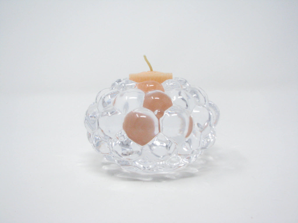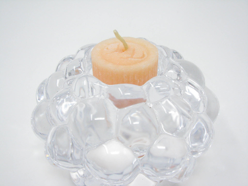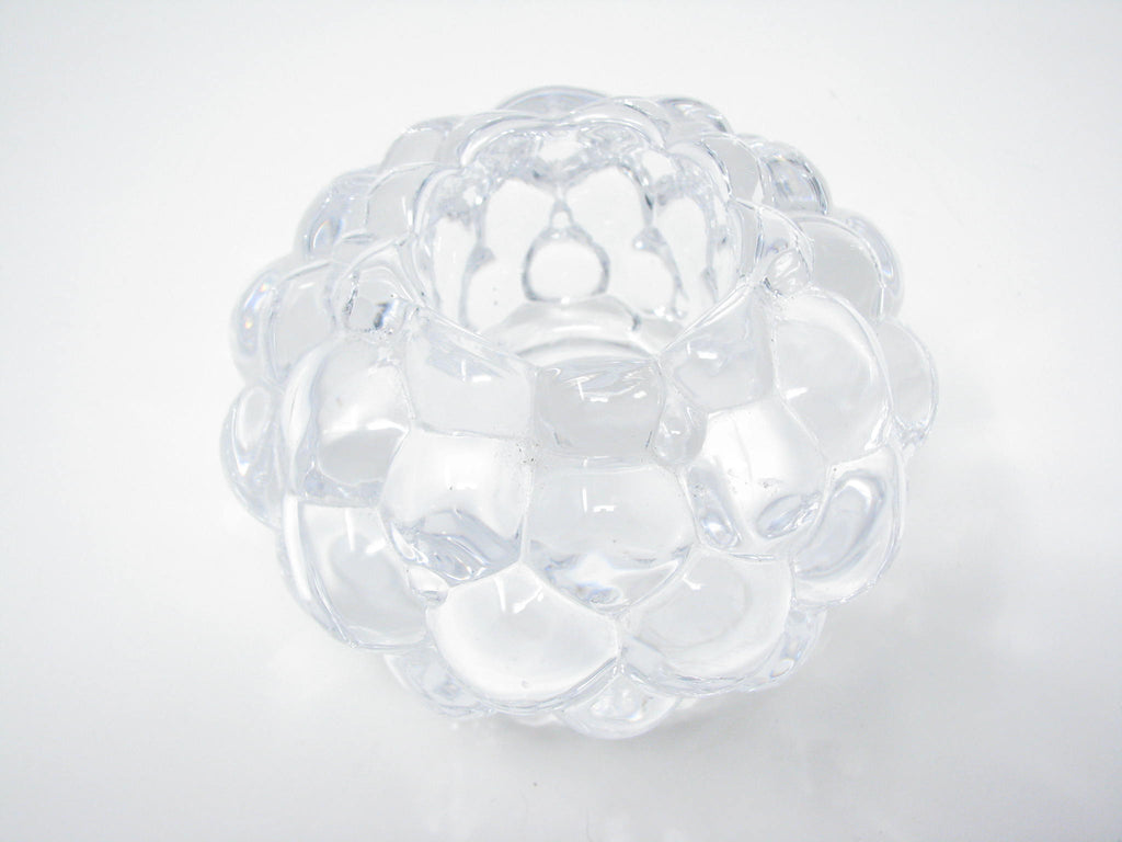 Stunning Orrefors crystal raspberry votive candle holders with bubble design. Candle not included.