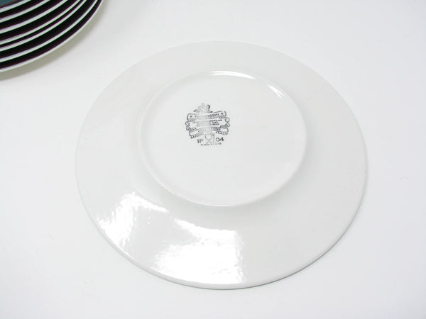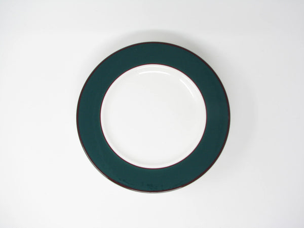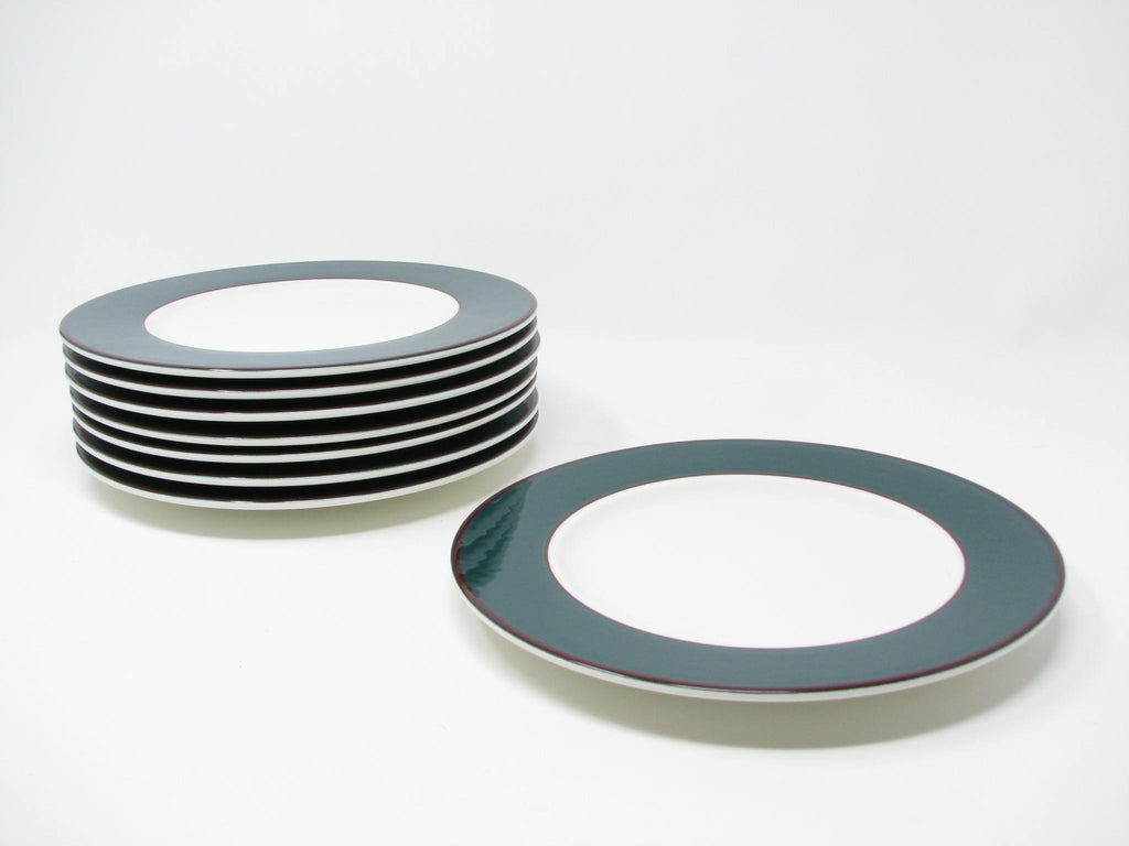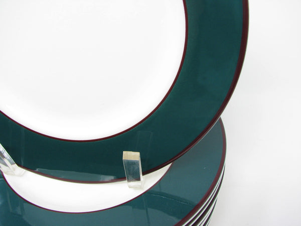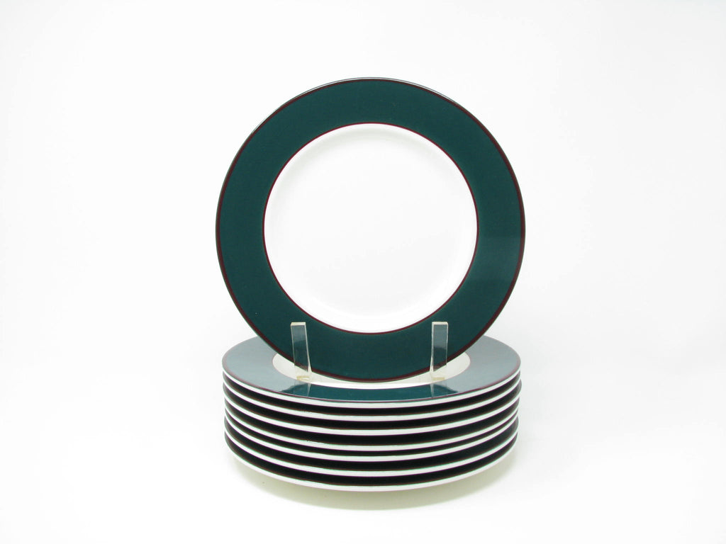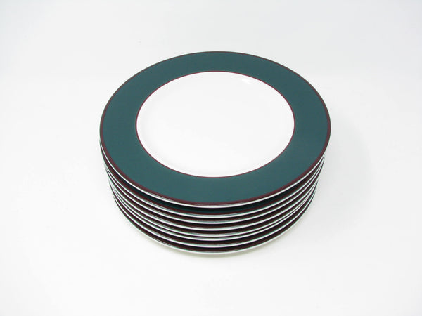 Pagnossin Treviso Italy Ironstone Salad Plates with Maroon Band and Green Rim - 8 Pieces