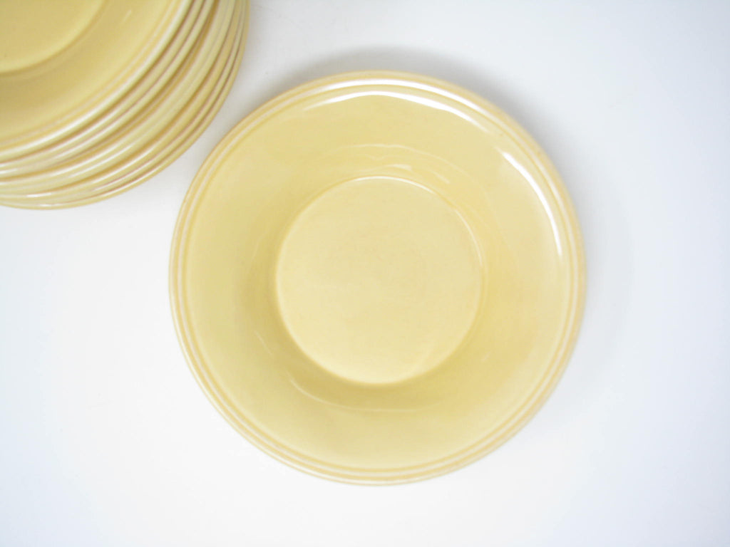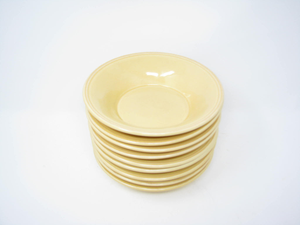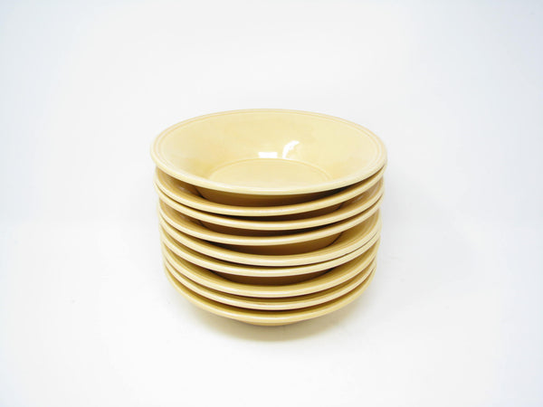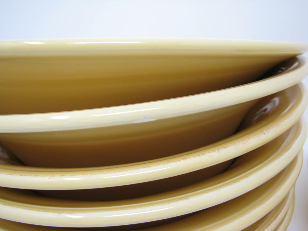 Set of 9 Miel yellow stoneware bowls made in Portugal for Sur La Table. Organic shape and subtle textured rim.