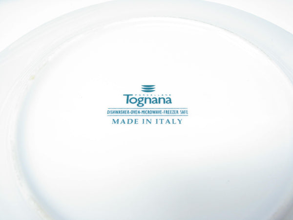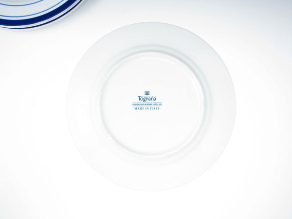 Set of 4 Tognana porcelain salad plates with blue trim made in Italy.