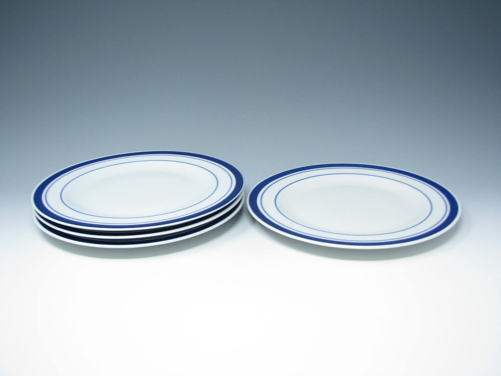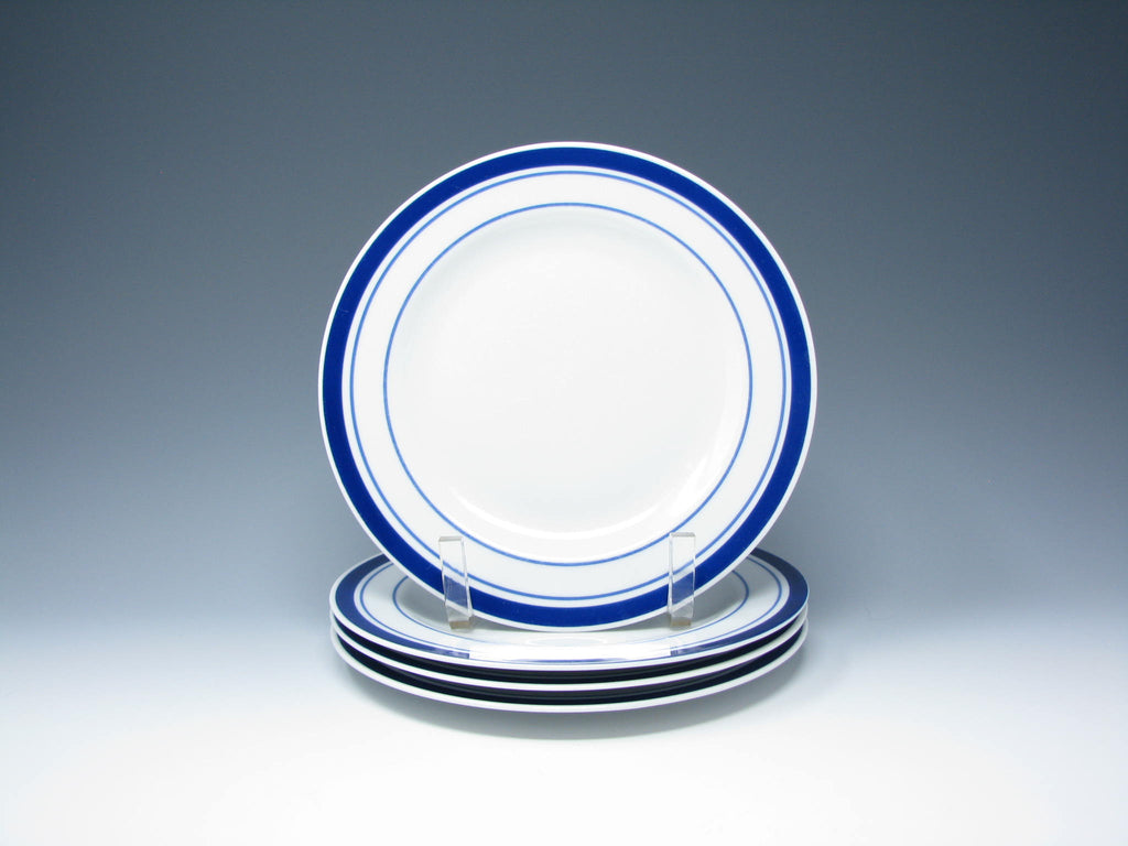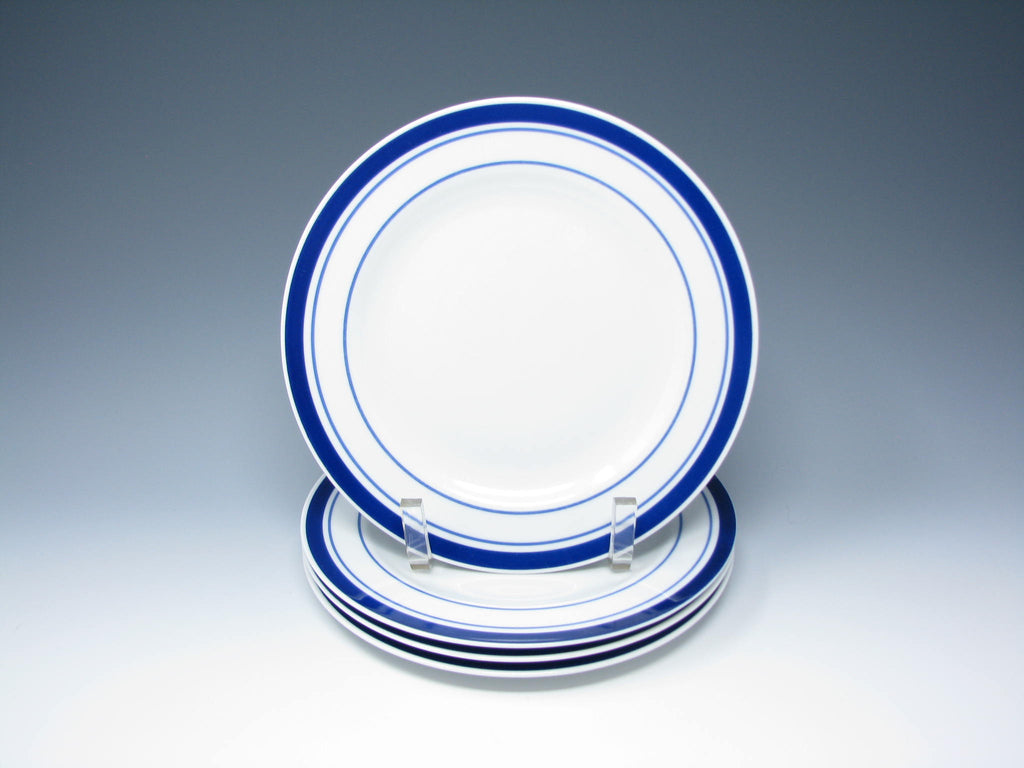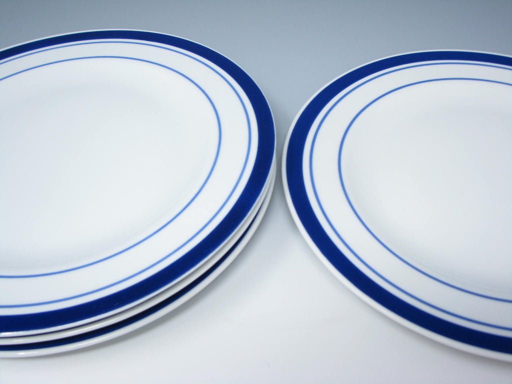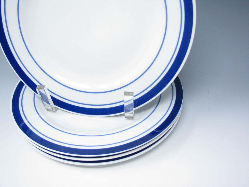 Tognana Italy Porcelain Salad Plates with Blue Trim - 4 Pieces