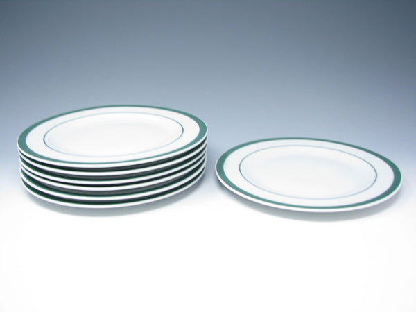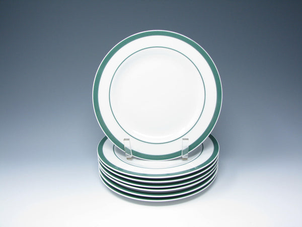 Tognana Italy Porcelain Salad Plates with Green Trim - 7 Pieces