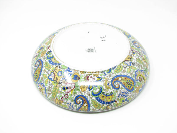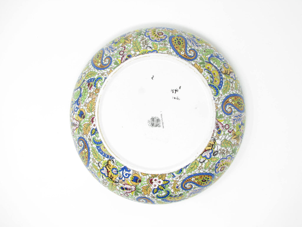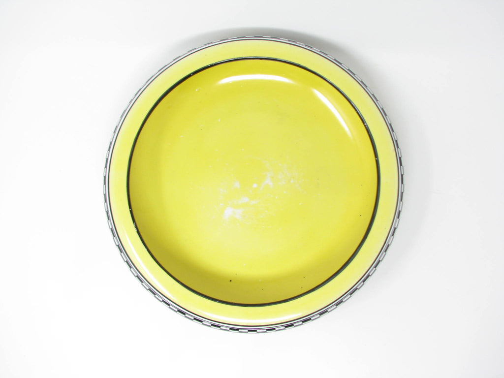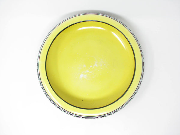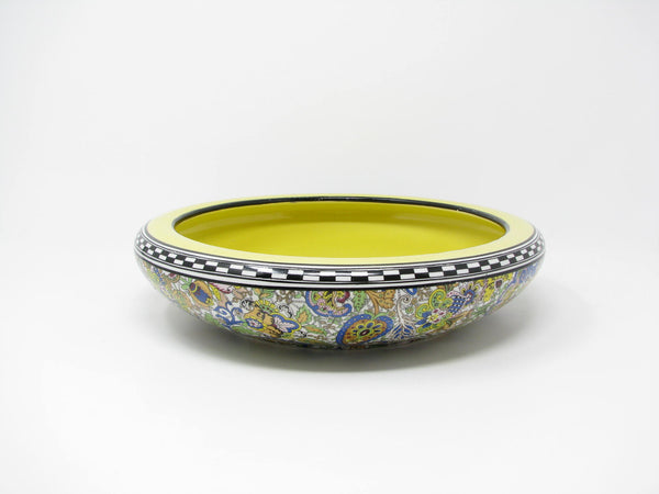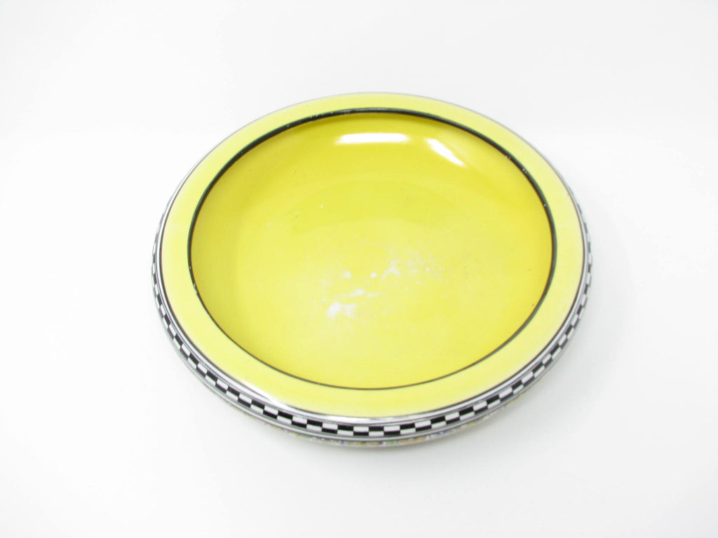 Vintage 1930s Royal Winton Ware Grimwades transferware centerpiece or console bowl with stunning yellow interior and checkboard / paisley pattern around body.
