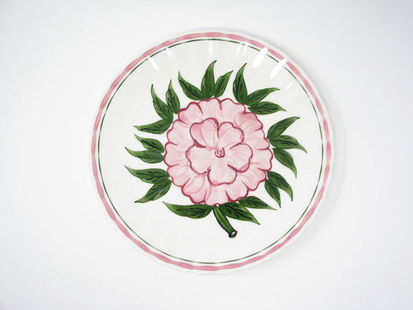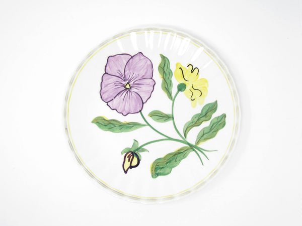 Vintage set of 8 mix and match Southern Pottery Blue Ridge floral design dinner or luncheon plates with fluted edge.