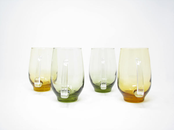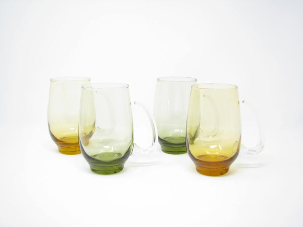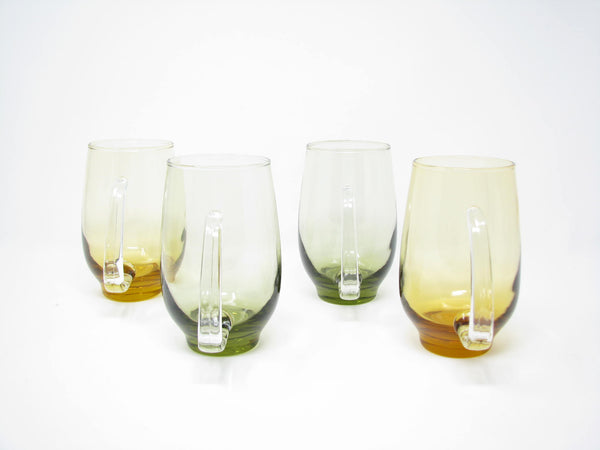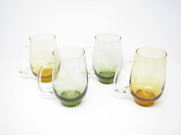 Vintage 1950s Libbey Tempo Amber & Green Glass Tankard Handled Mugs - 4 Pieces