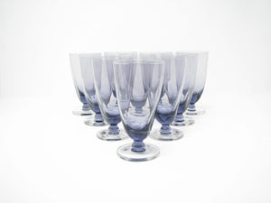 Stunning set of 10 vintage 1950s Imperial Glass (Ohio) Sveldt Violet purple footed tumblers. A Russel Wright inspired design as Mr. Wright had designed the Pinch glassware (similar aesthetic) for Imperial Glass-Ohio a few years earlier.