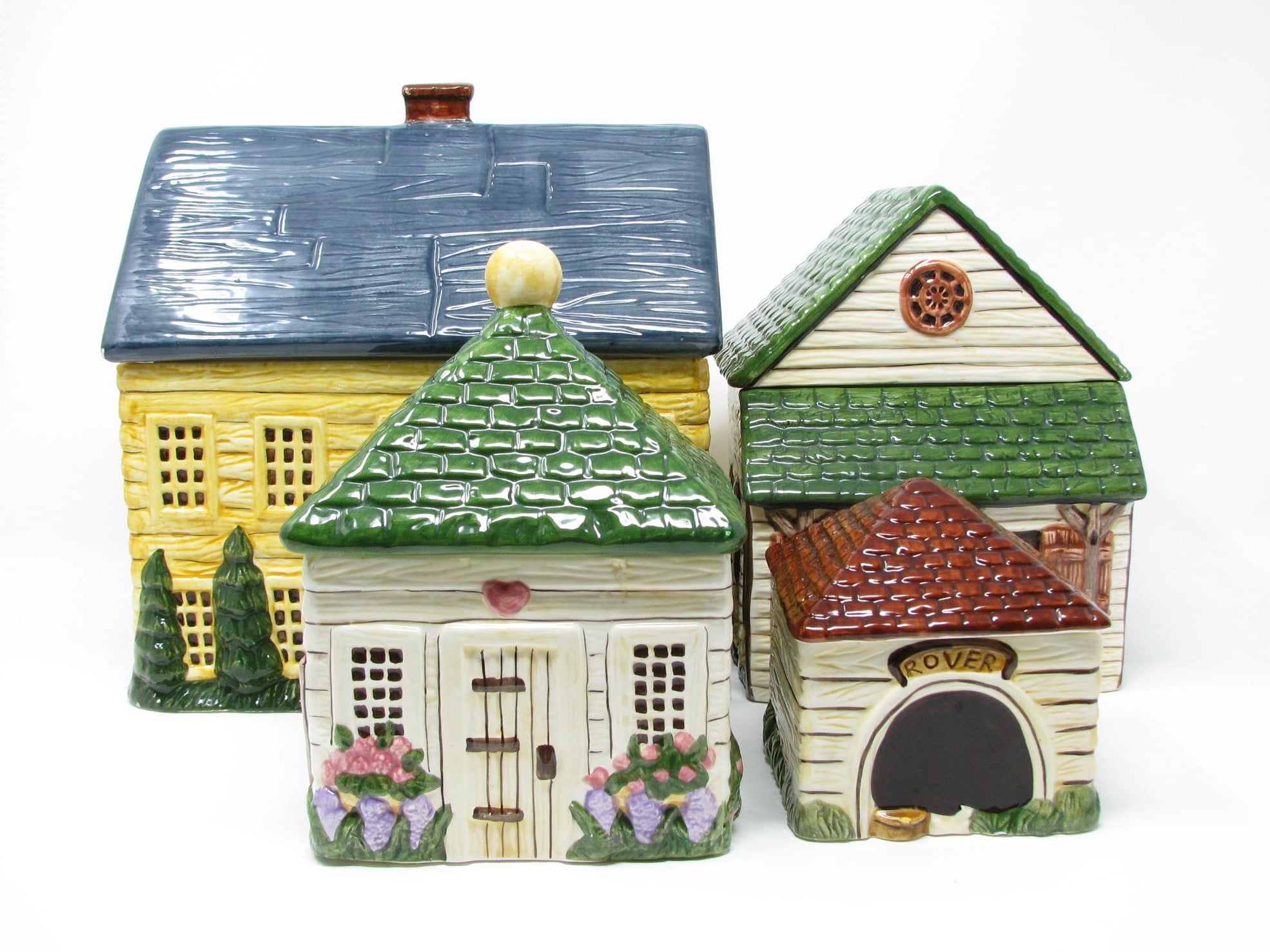 Vintage 1990s Block Country Village Canister Set with House Stable Toolshed and Dog House- 4 Pieces