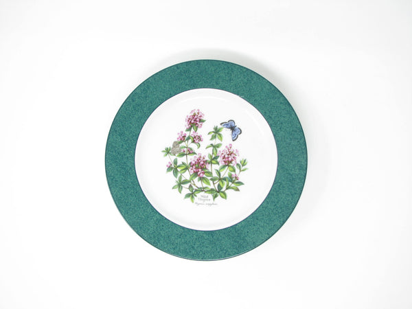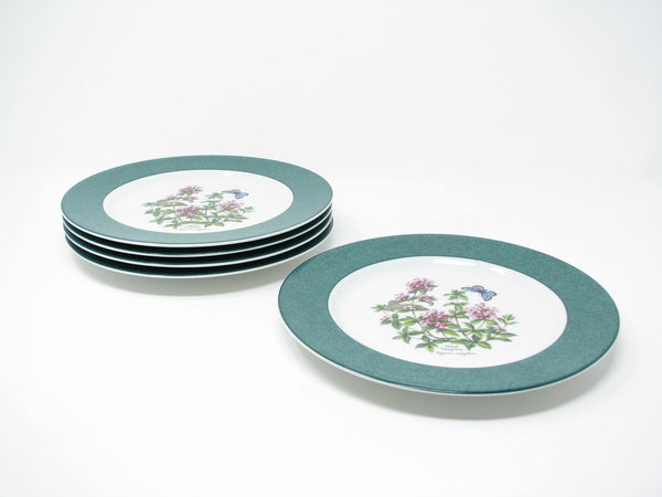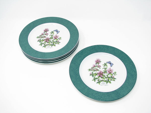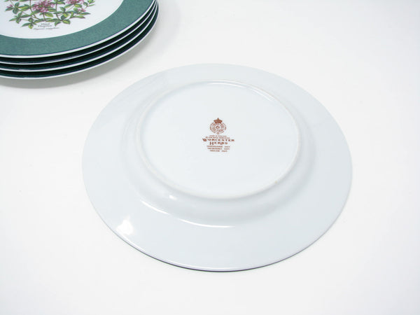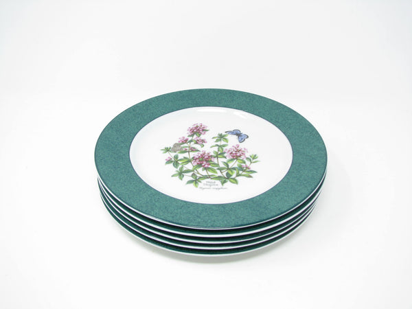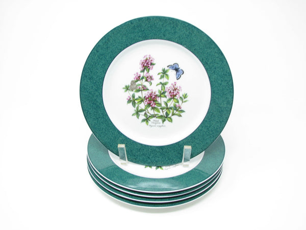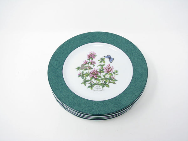 Vintage set of 5 Royal Worcester Herbs porcelain accent salad plates with Wild Thyme design, green band and trim. Lovely botanical pattern. Made in England.