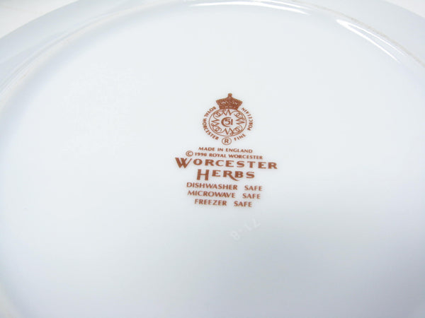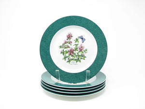 Vintage 1990s Royal Worcester Herbs Wild Thyme Porcelain Accent Salad Plates with Green Band - 5 Pieces