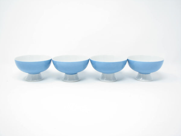 Vintage set of 4 Mikasa Pivotal Flower Garden turquoise and white footed bowls or dessert dishes designed by Ben Seibel.