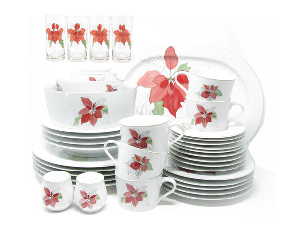 Vintage Block Poinsettia Dinnerware Set Designed by Mary Lou Goertzen - 39 Pieces