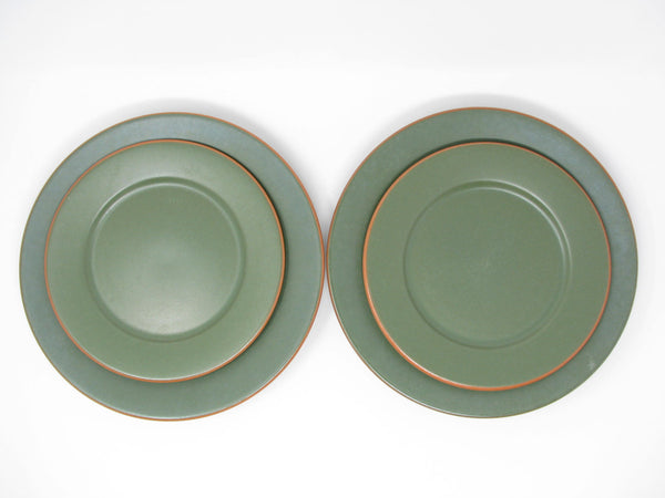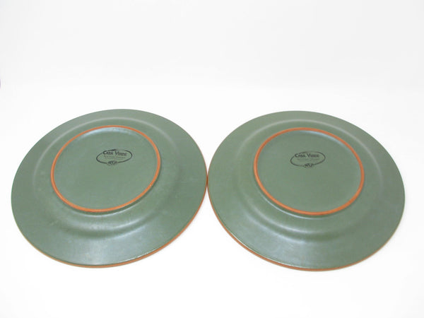Vintage set of Casa Verde green glazed terra cotta dinner plates and salad plates. This 4 piece set includes 2 dinner plates and 2 salad plates. Made in Portugal.