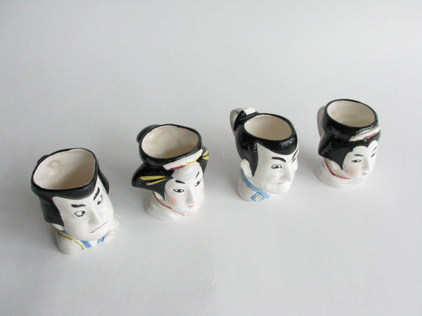 Vintage Ceramic Japanese Kabuki Head Mugs by Tastesetter by Sigma - Set of 4