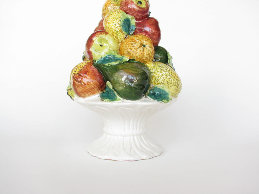 Vintage Ceramic Mixed Fruit Topiary with White Pedestal Base