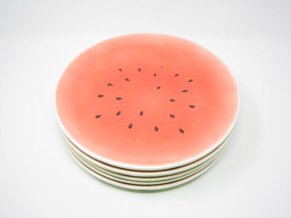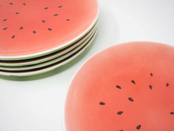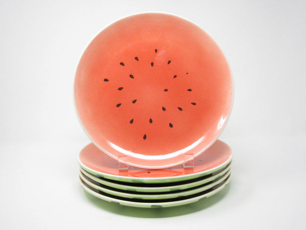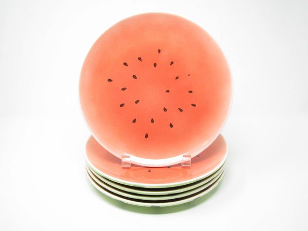Vintage set of 5 ceramic dinner plates with watermelon design.