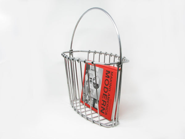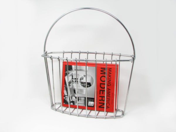 Vintage chrome wire basket shaped magazine rack. Ample space for magazines, newspapers, or your favorite books. Book not included.