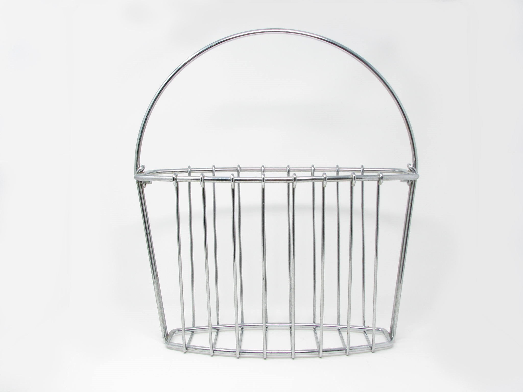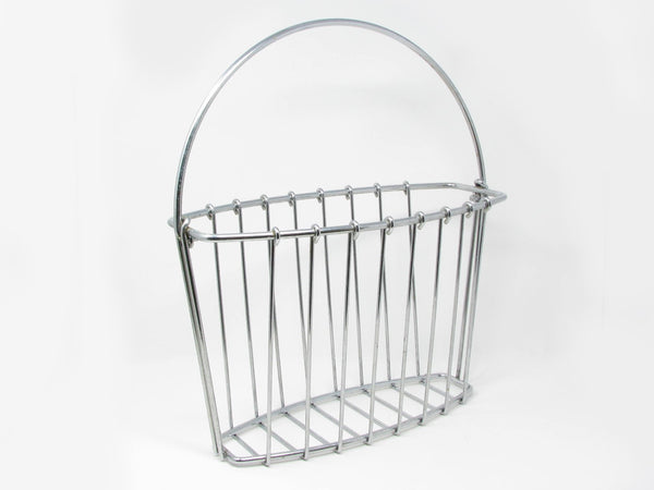 Vintage Chrome Wire Basket Shaped Magazine or Book Holder