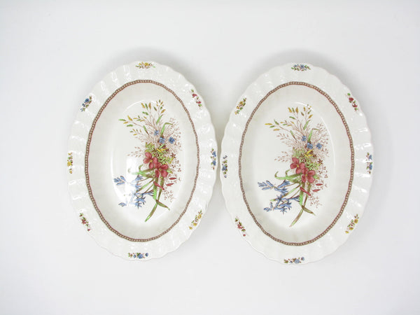 Vintage Copeland Spode Rosalie Oval Serving Bowls with Floral Center - 2 Pieces