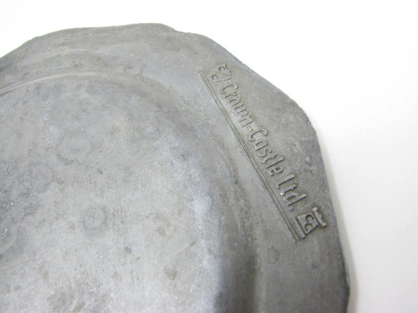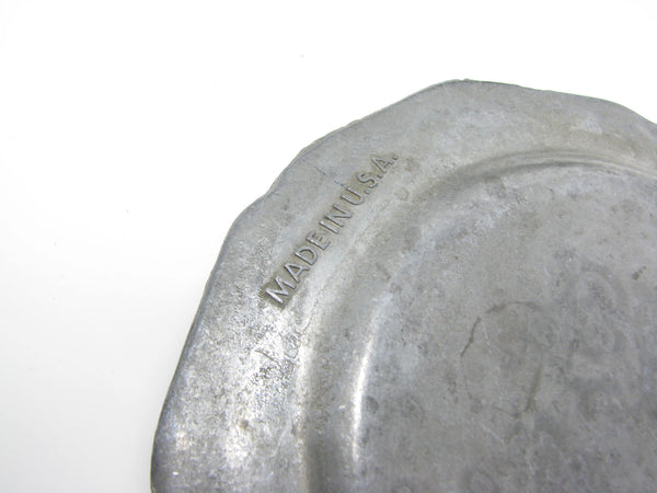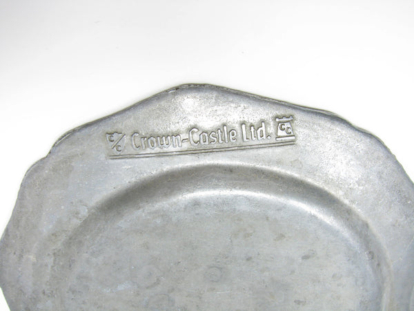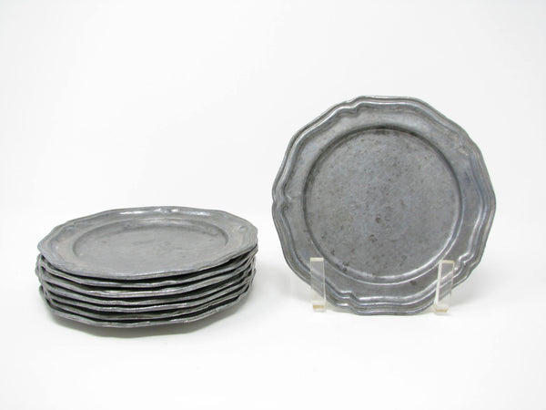 Vintage set of 8 Crown Castle Ltd hollowware alloy metal bread plates with scalloped edge. Made in the United States in the 1970s.
