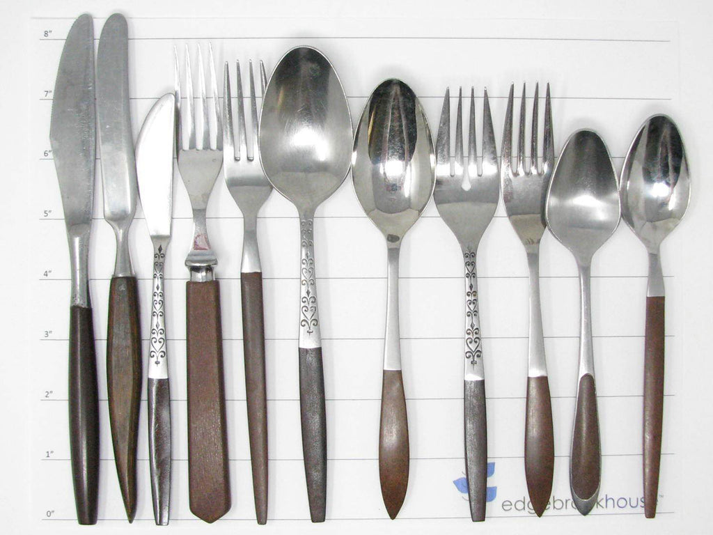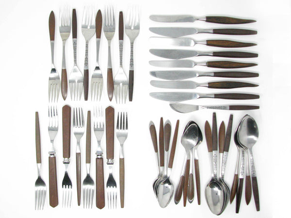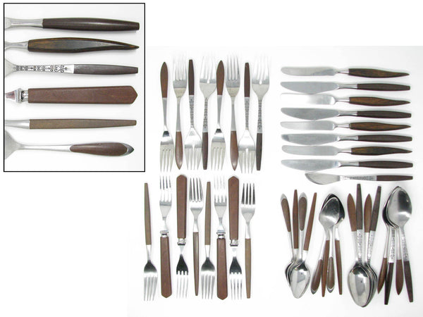 Vintage Danish Modern Mix Match Stainless Steel & Wood Flatware Set B – 8 Place Settings