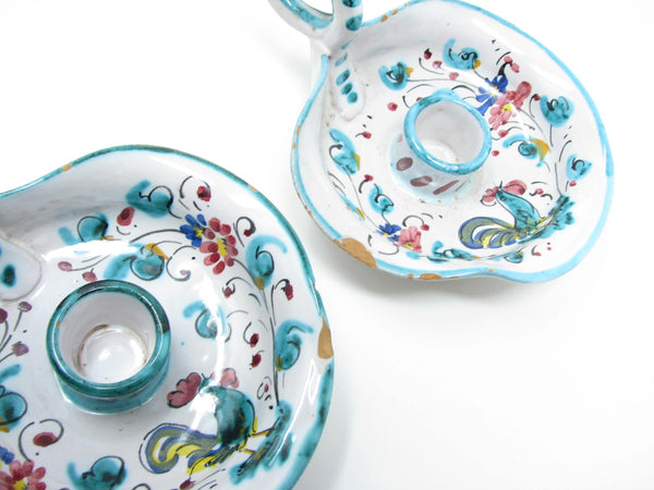 Vintage Deruta Italy Orvieto Green Rooster Candle Holders - 2 Pieces