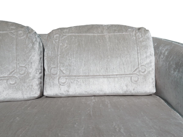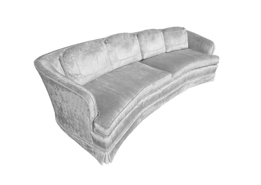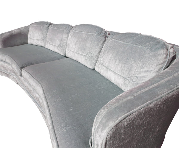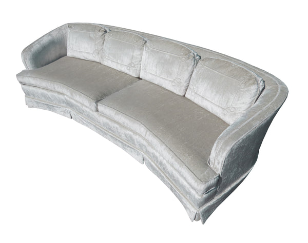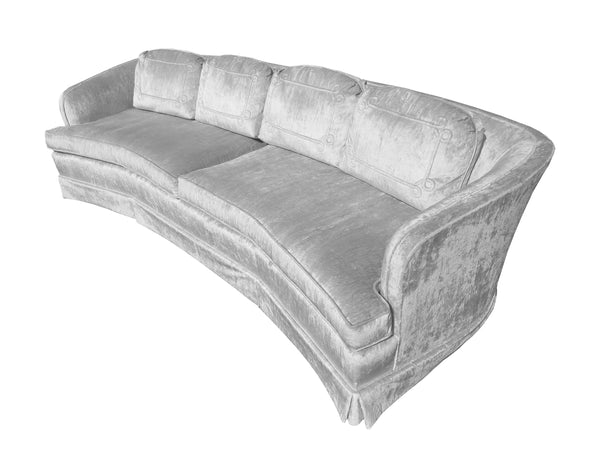 Vintage Ethan Allen "Traditional Classics" Art Deco Curved Sofa With Platinum Velvet Chenille
