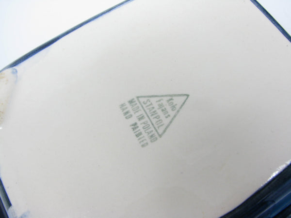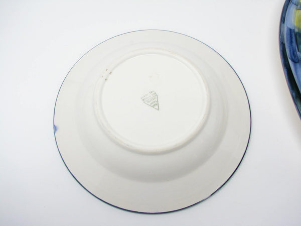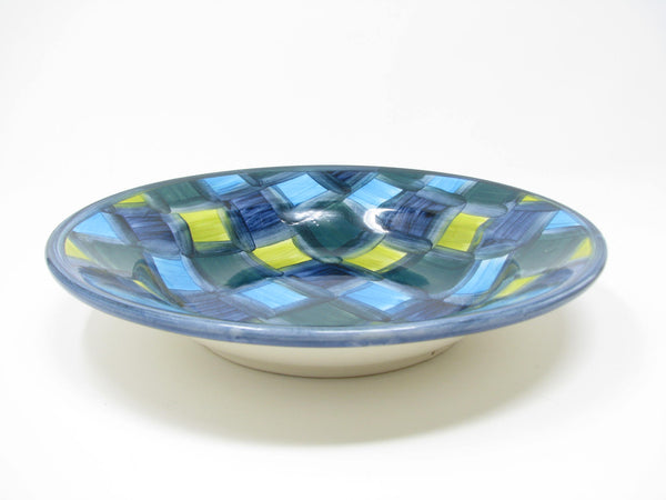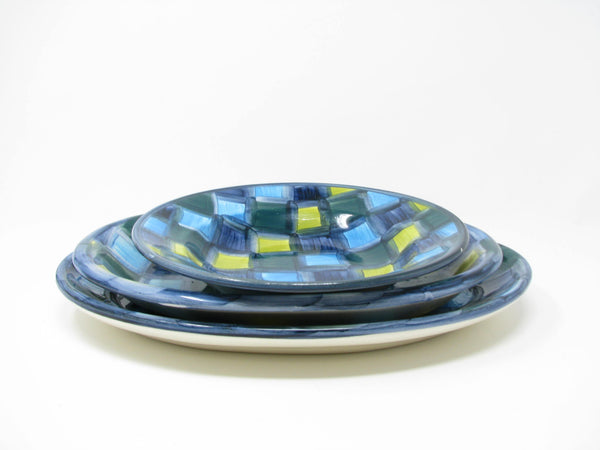 Vintage Fajans Polish Pottery Ceramic Serving Dishes with Blue Green Plaid Pattern - 7 Pieces