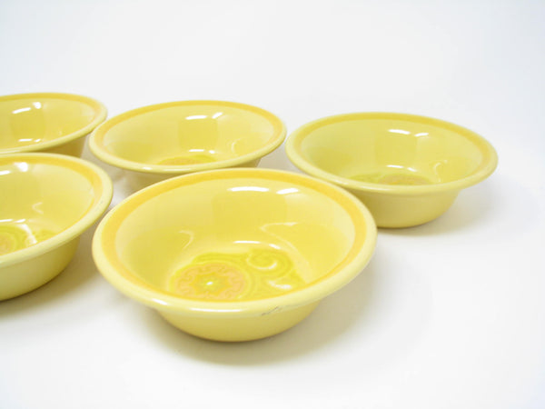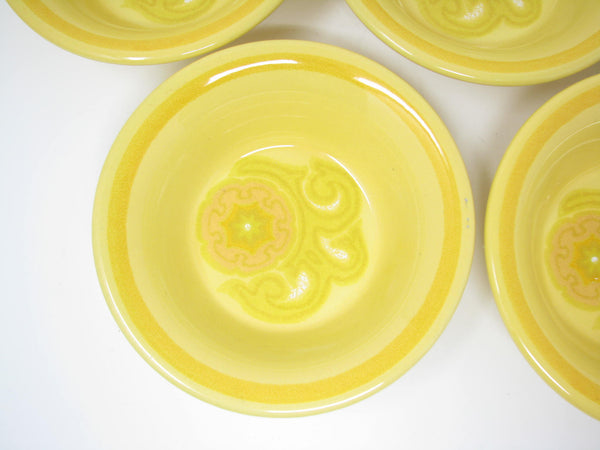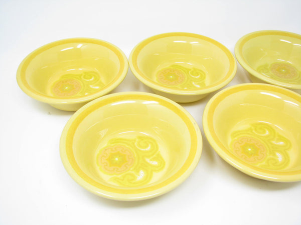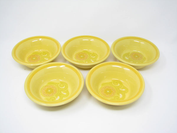 Set of 5 vintage Franciscan Mirasol bright yellow/orange earthenware small bowls with bright and cheerful floral design.