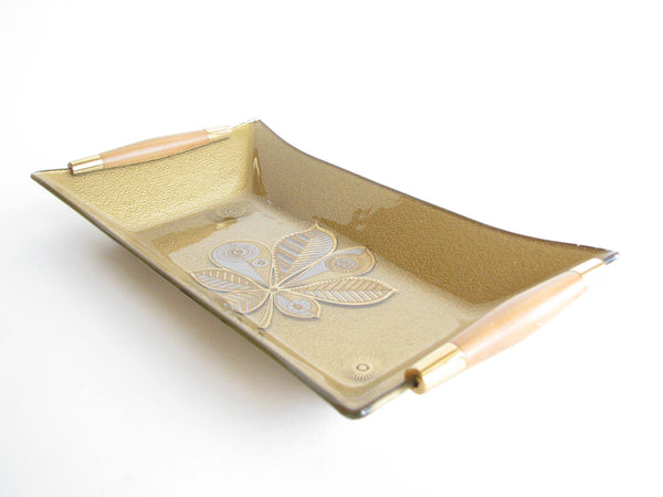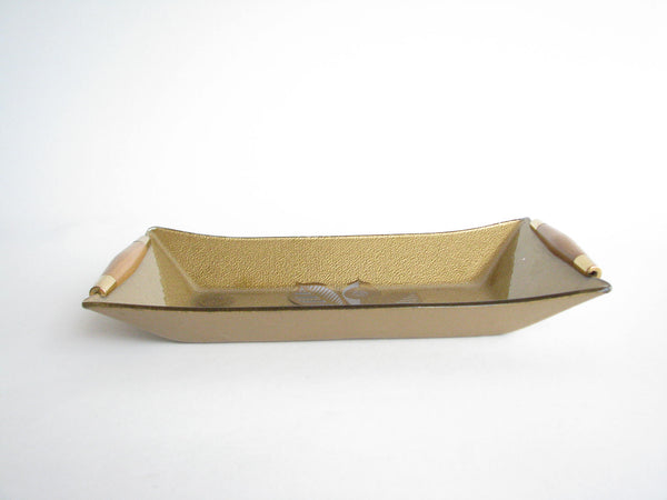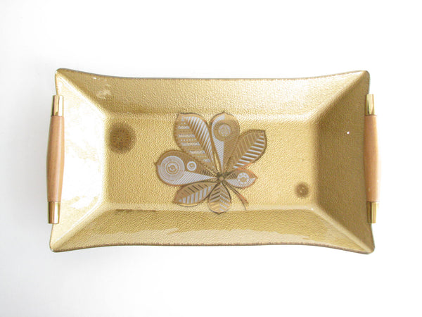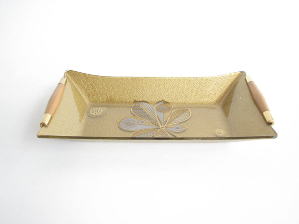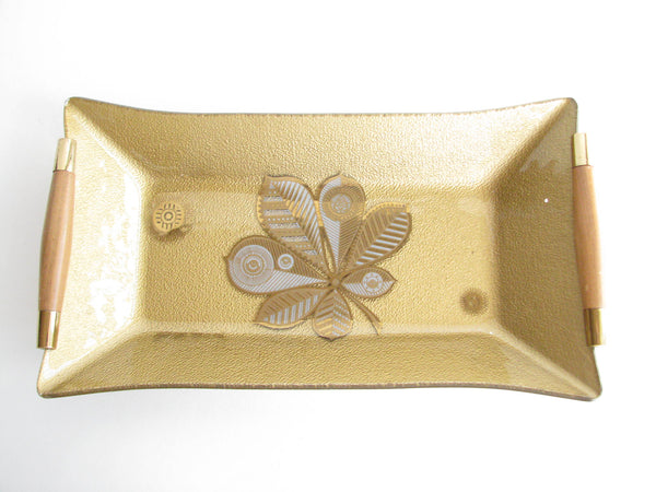 Vintage Georges Briard Heritance Rectangular Glass Serving Tray with Gold Leaf Design and Wood Handles
