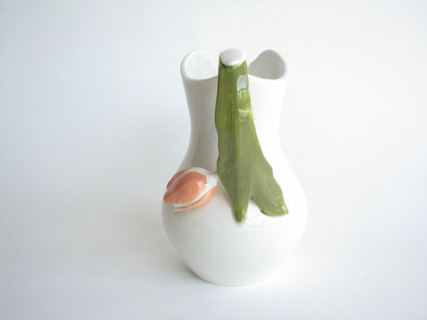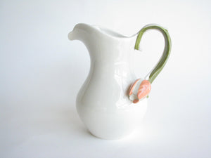 Vintage Goebel white ceramic pitcher with peach tulip handle made in Germany.