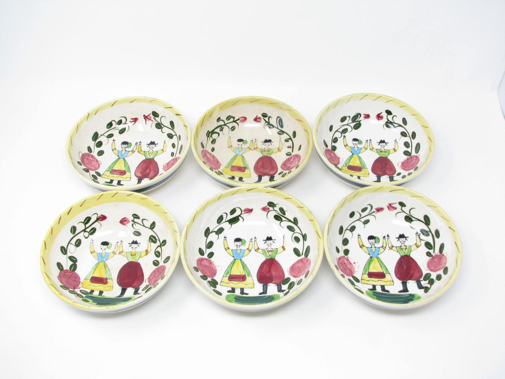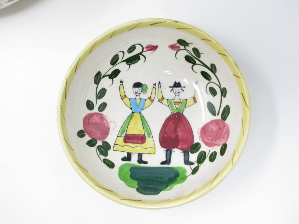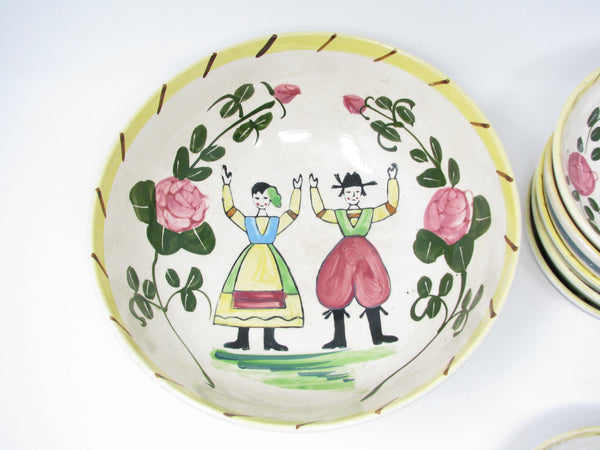 Vintage Hand-Painted Folk Art Figures Scandinavian French Dutch Serving Bowl Set - 7 Pieces