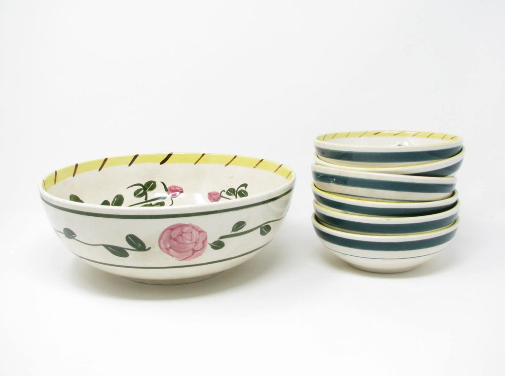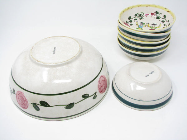 Damage or Points of Notice: Excellent vintage condition appropriate with age and light use. Larger bowl and a smaller bowl have some discoloration. Crazing is present. No chips or cracks.