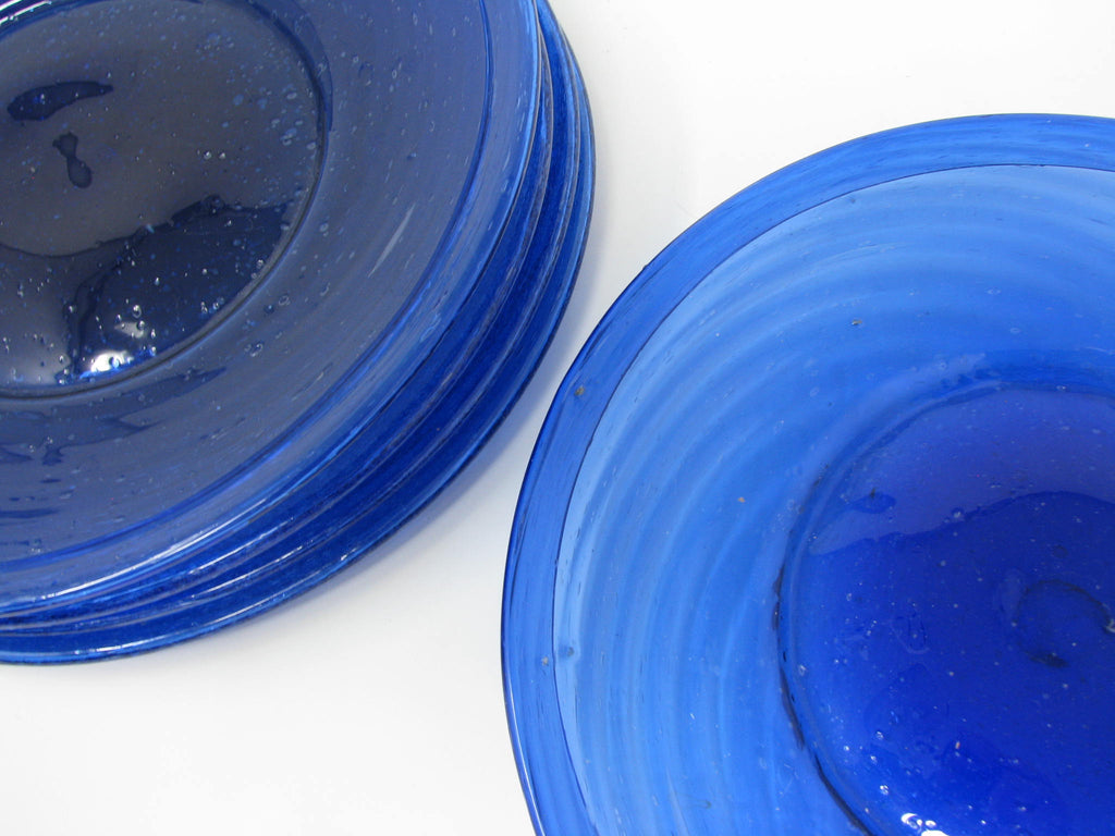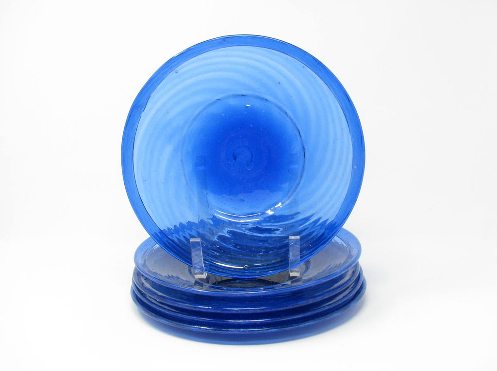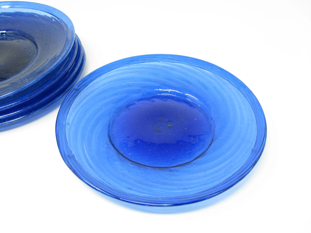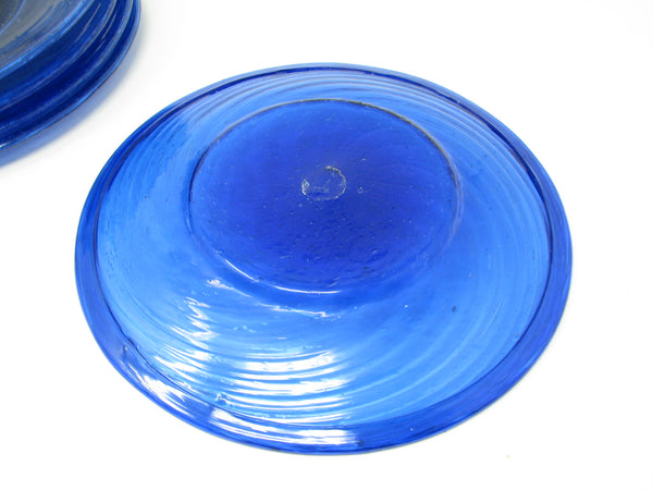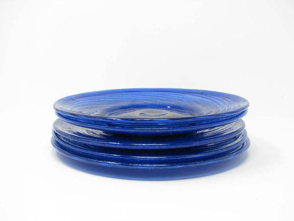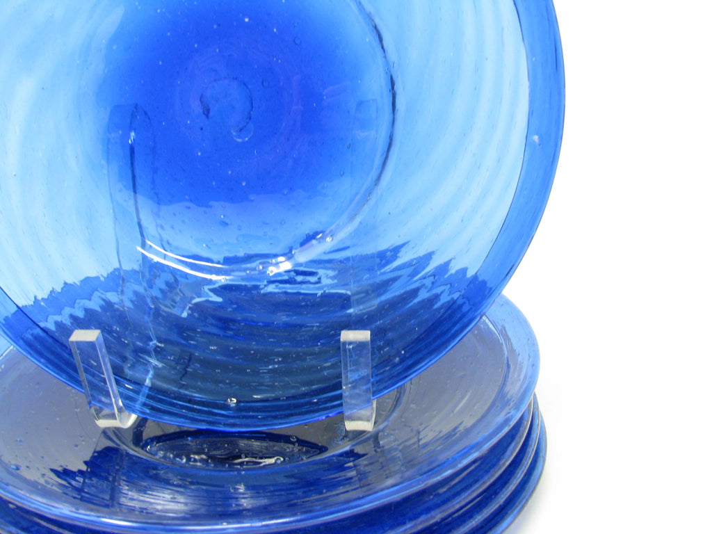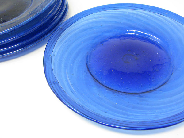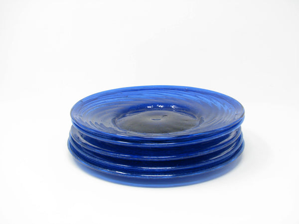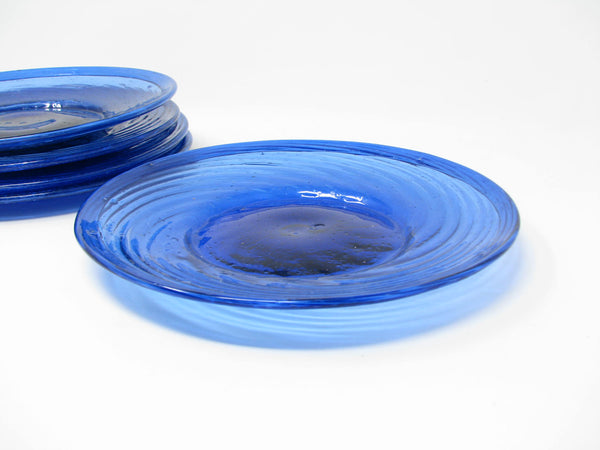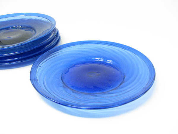 Vintage Handcrafted Blue Glass Salad Plates - 6 Pieces