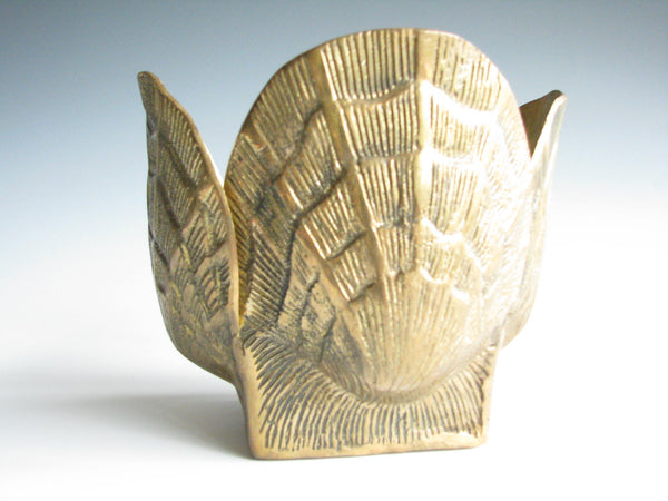 A vintage brass planter comprised of sculptured brass sea shells, each side slightly varying in shape. Heavy in weight and in excellent vintage condition.