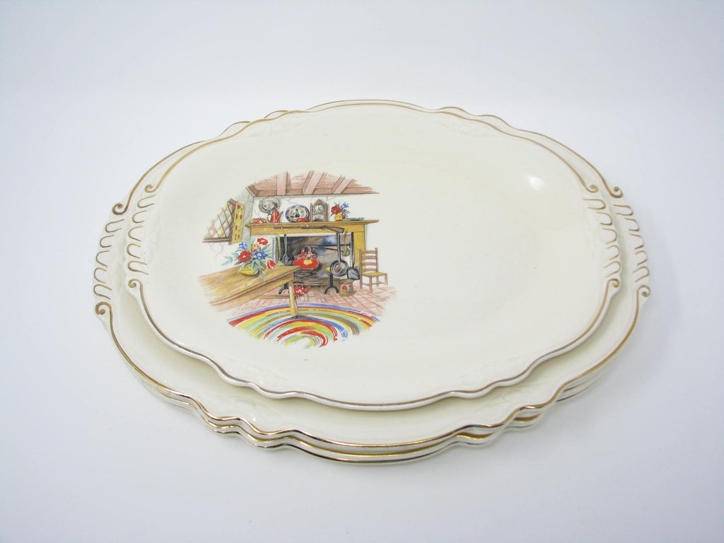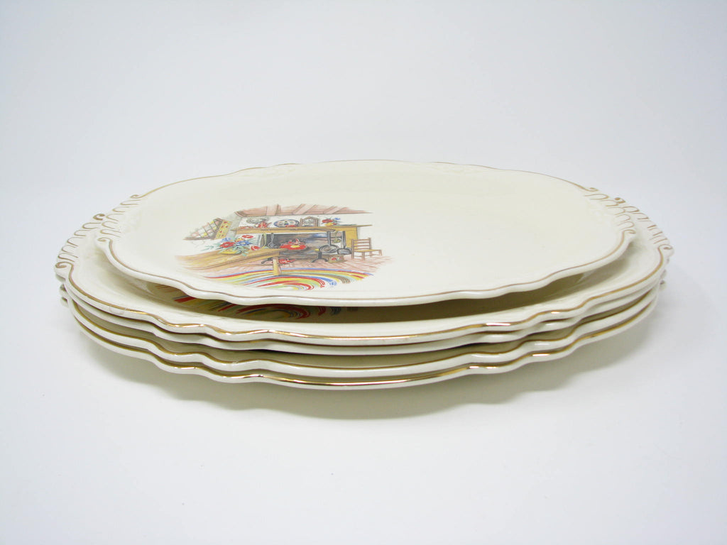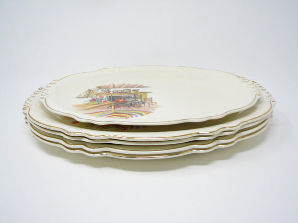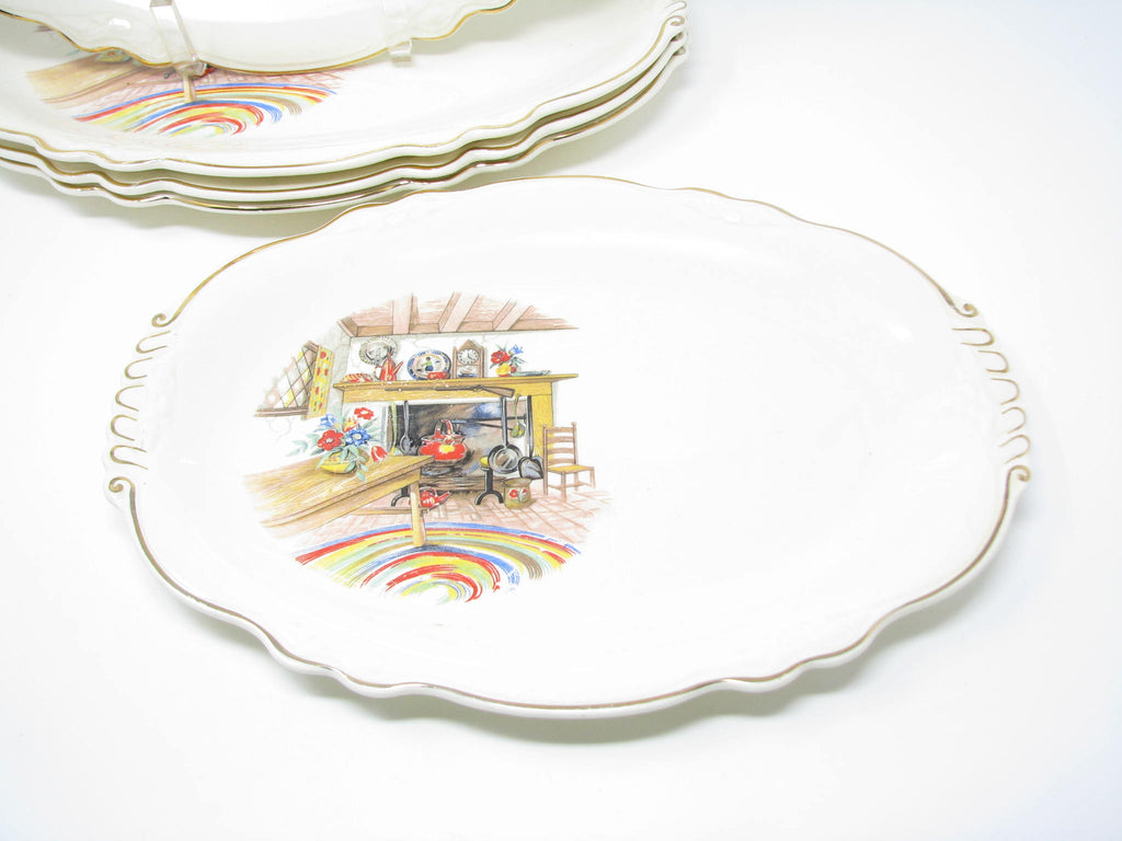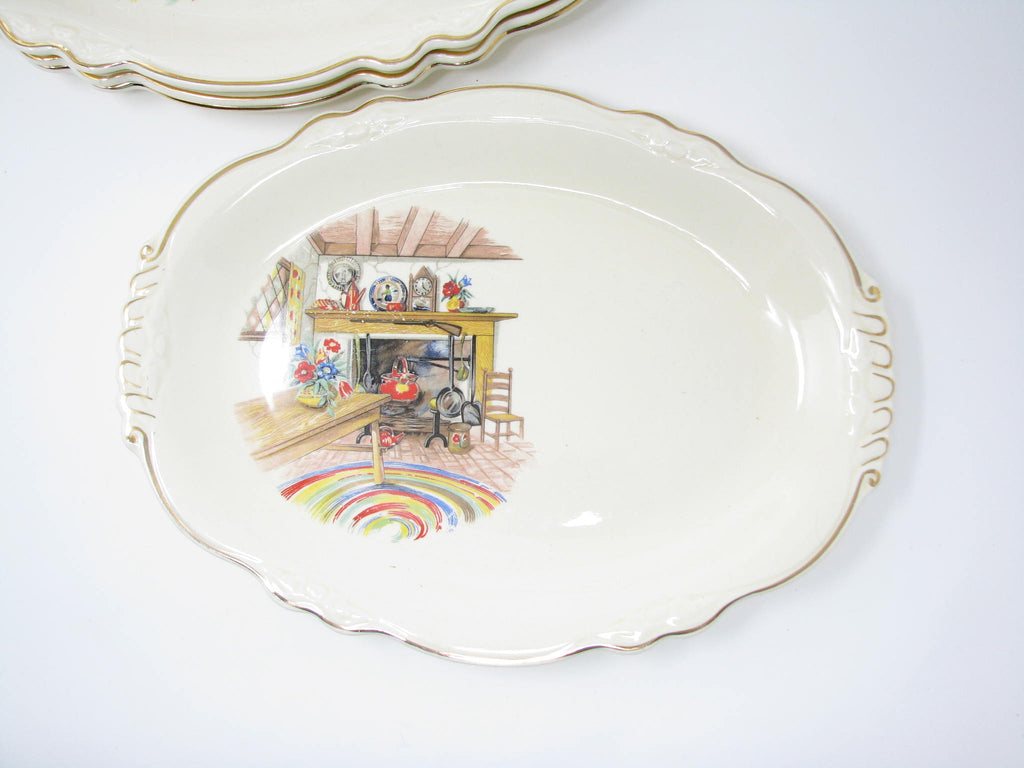 Vintage Homer Laughlin Colonial Kitchen Platters with Fireplace Mantel Pattern and Gold Trim - 5 Pieces