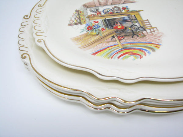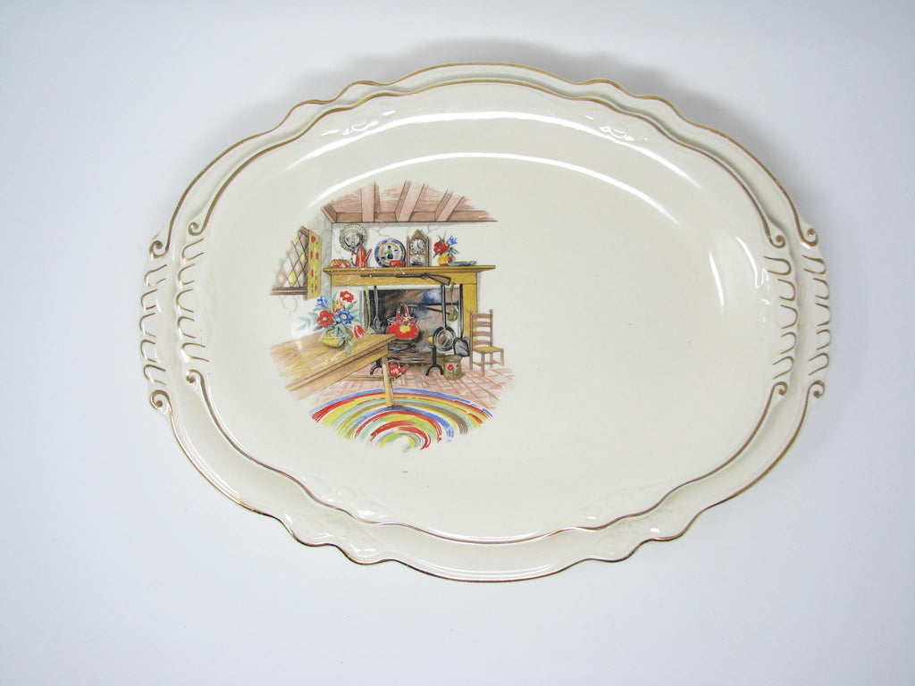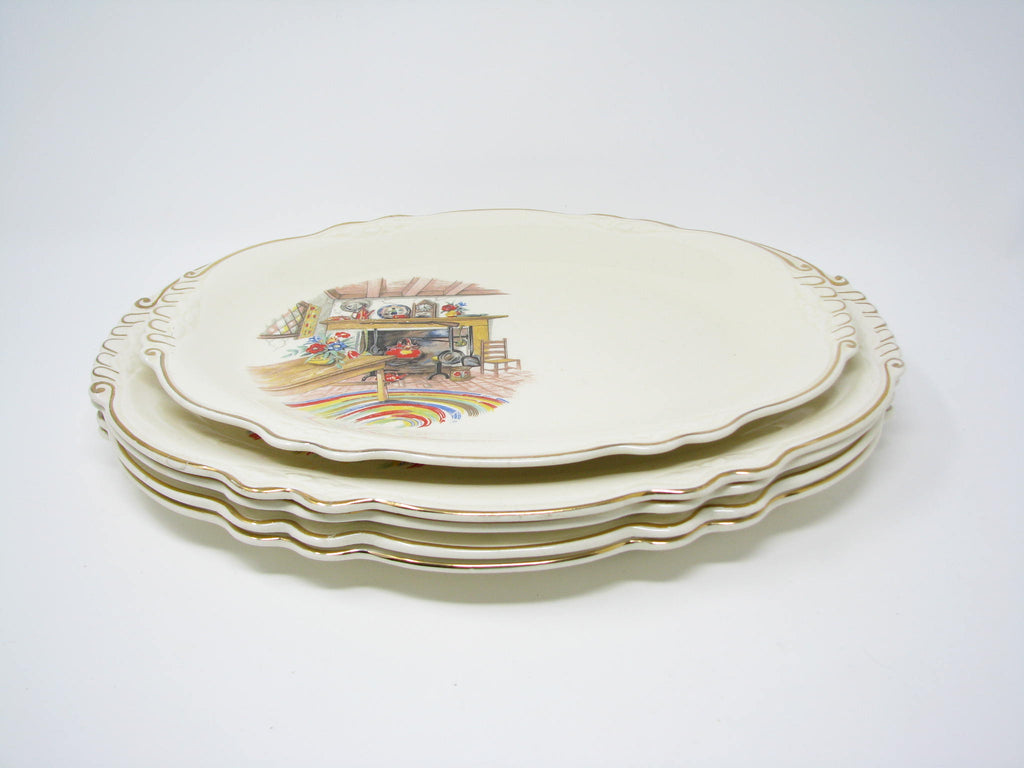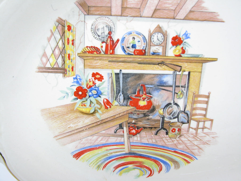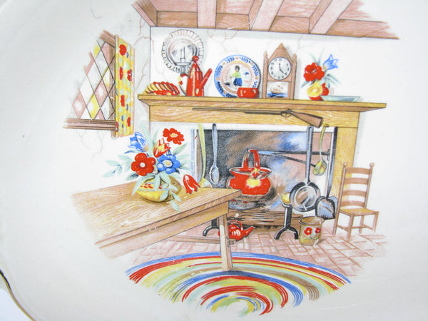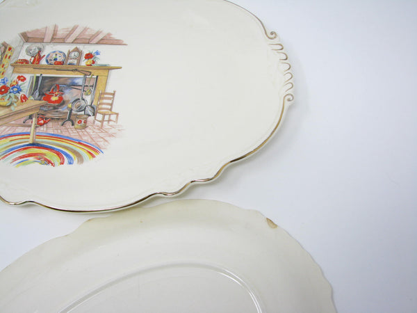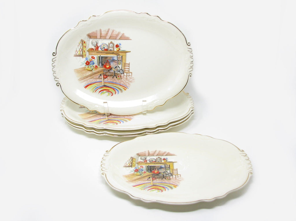 Vintage Homer Laughlin Colonial Kitchen Platters with Fireplace Mantel Pattern and Gold Trim - 5 Pieces