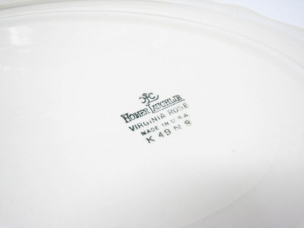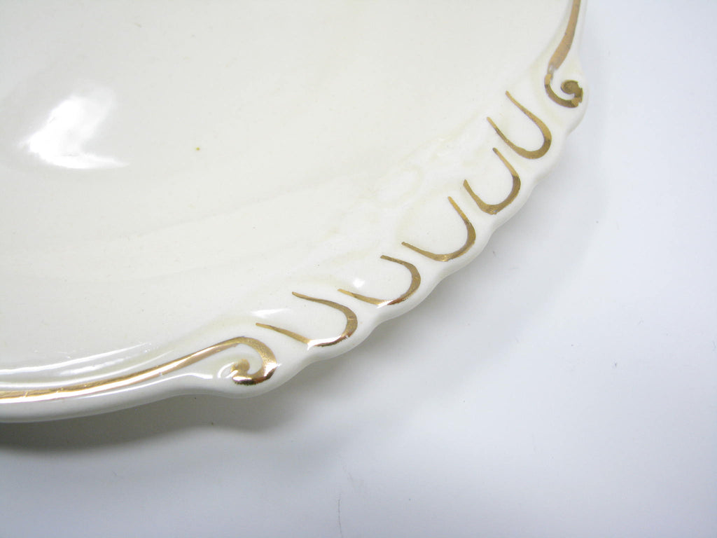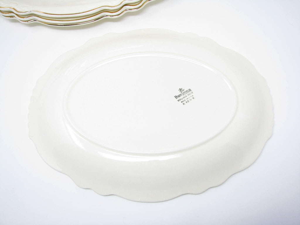 Vintage Homer Laughlin Colonial Kitchen platters with Virigina Rose shape and gold trim. This 5 piece set includes 4 large platters and 1 smaller platter.