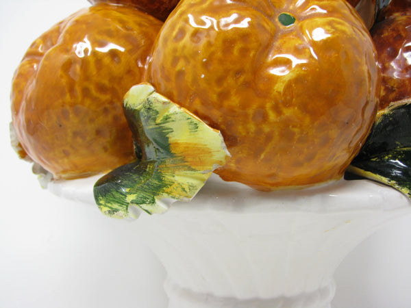 Vintage ceramic fruit topiary featuring oranges and leaves. Made in Italy.