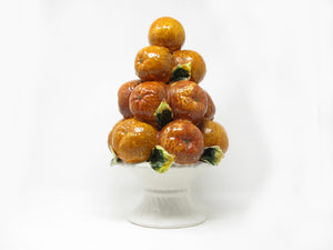 Vintage Italian Ceramic Orange Fruit Topiary with White Pedestal Base