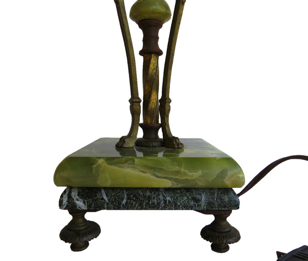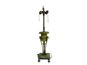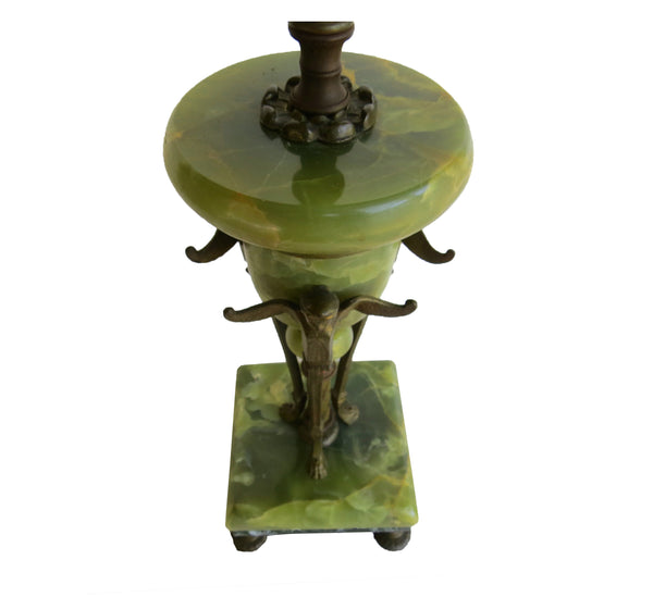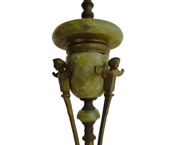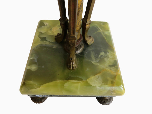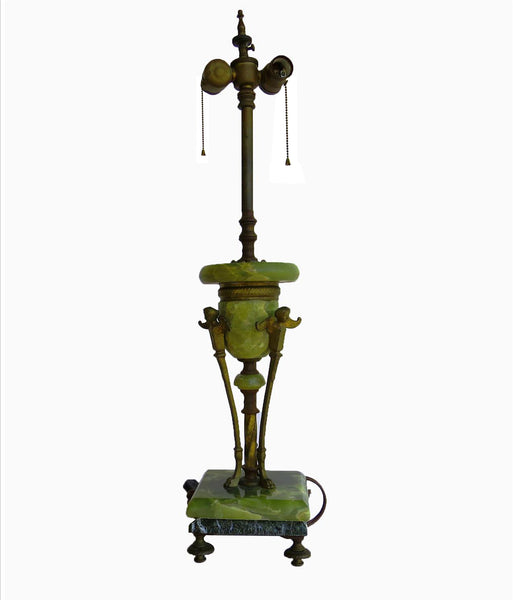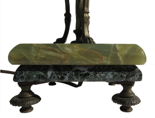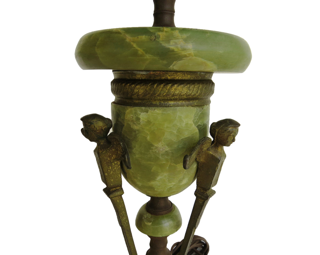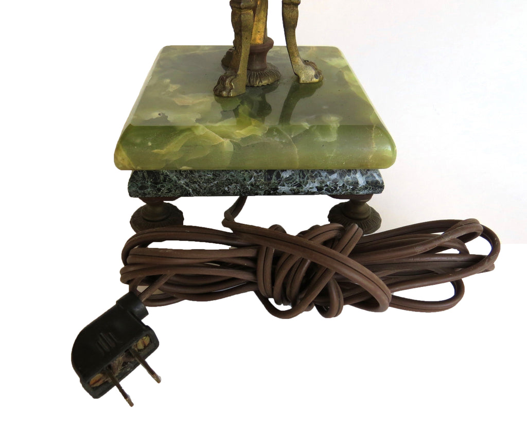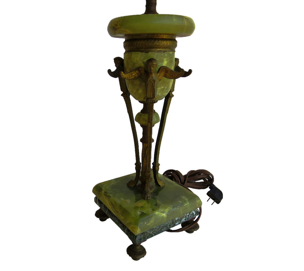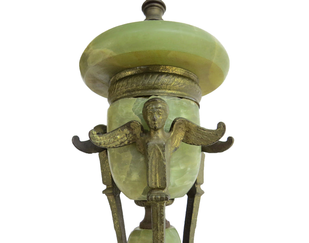 Antique Italian Renaissance Style Solid Onyx and Brass Table Lamp With Winged Angels