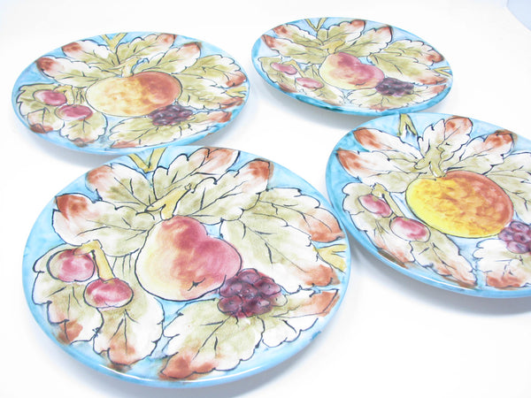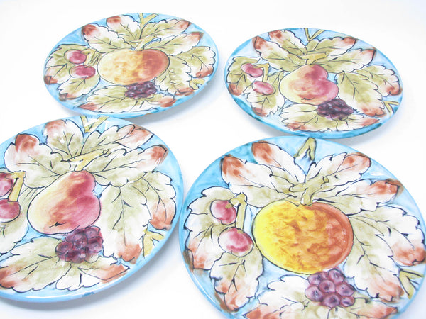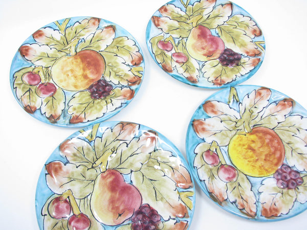 Vintage Italian Pottery Salad Plates with Hand-Painted Fruit Designs - 4 Pieces