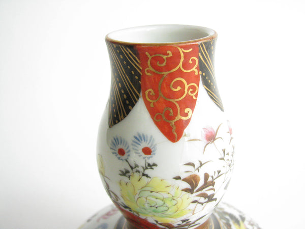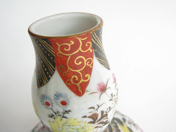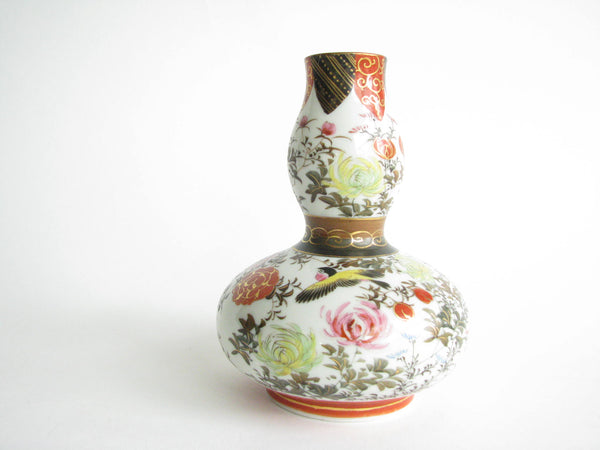 Vintage Japanese Matsumura Kutani Double Gourd Porcelain Vase with Birds and Floral Motif