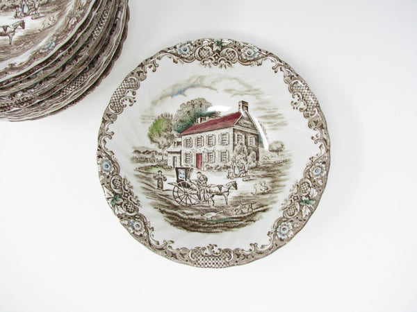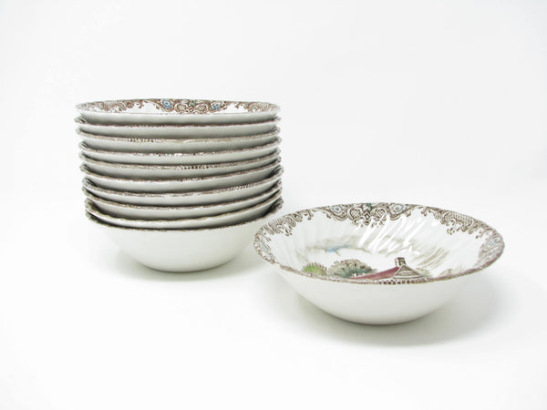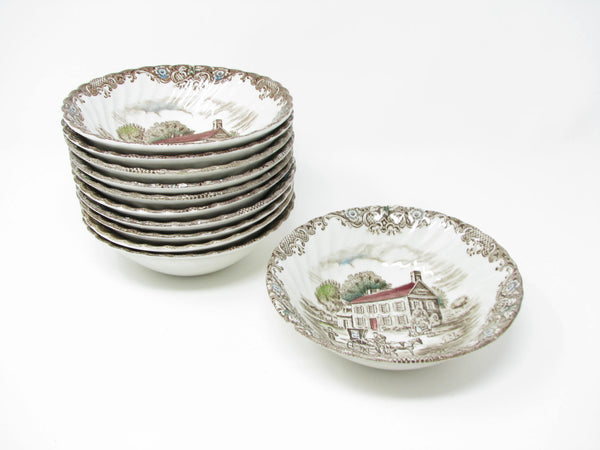Vintage set of 11 Johnson Brothers Heritage Hall ironstone transferware small bowls.