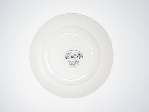 Vintage set of 8 Johnson Brothers Rose Chintz Pink dinner plates with beautiful floral design. Made in England stamp. This pattern was produced from 1930 - 2003.