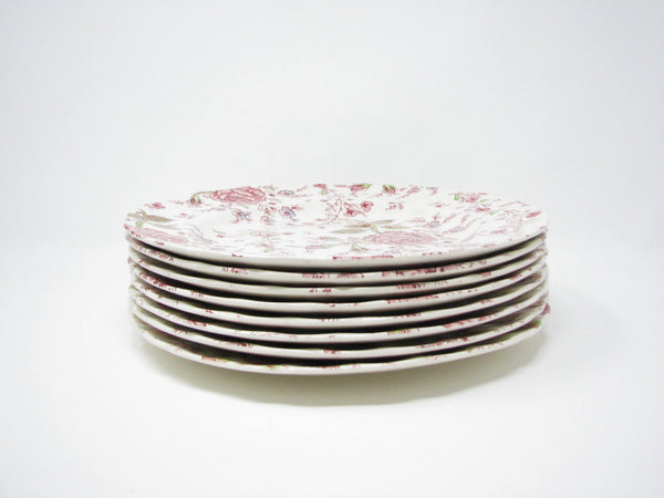 Vintage Johnson Brothers Rose Chintz Pink Dinner Plates - Set of 8