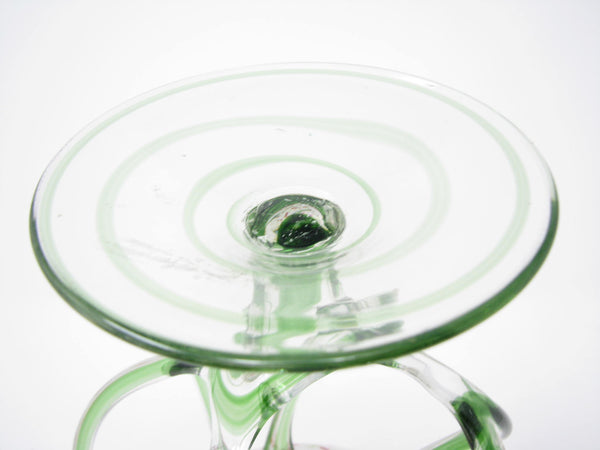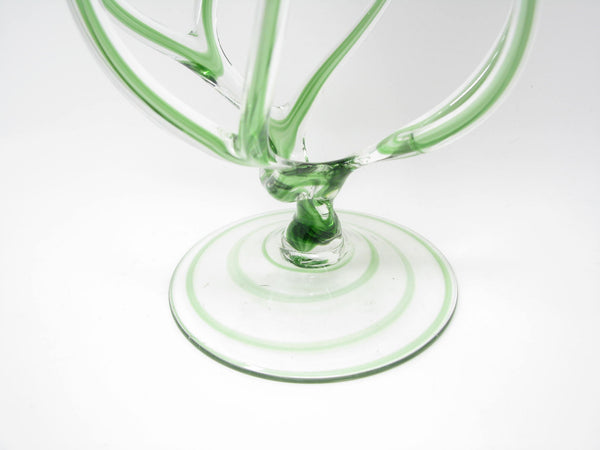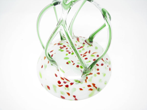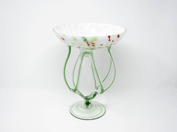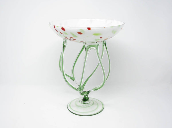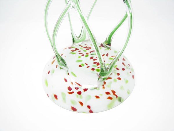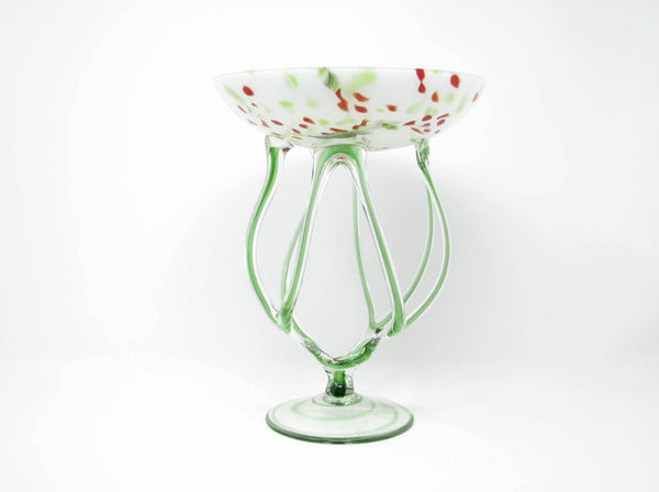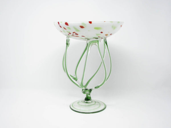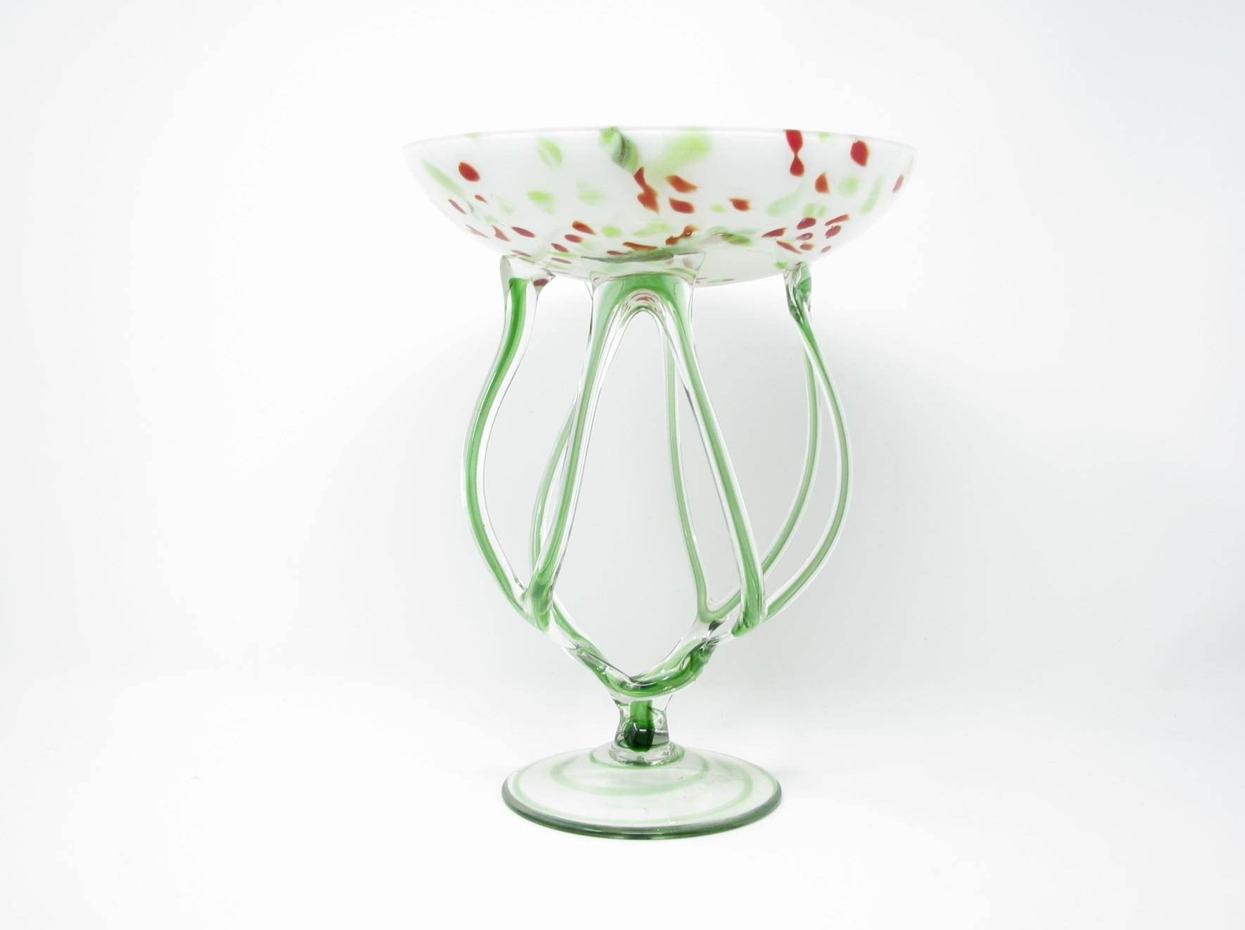 Vintage Jozefina handcrafted mouth blown art glass octopus or jellyfish shaped compote. Beautiful green, white and red design. Made in Krosnos, Poland.