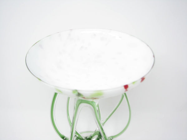 Vintage Krosno Jozefina Poland Art Glass Octopus Jellyfish Compote Bowl in Green, White and Red