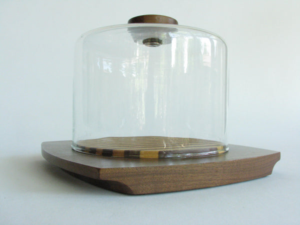 Vintage Kustom Kraft Solid Black Walnut and Glass Cheese Dome