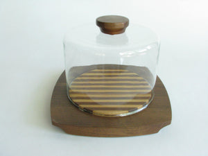 edgebrookhouse - Vintage Kustom Kraft Solid Black Walnut and Glass Cheese Dome