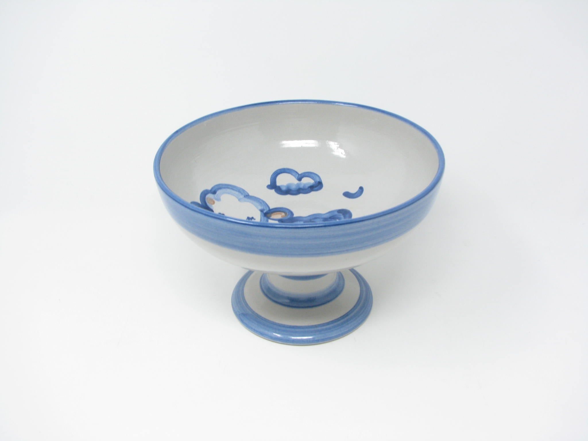 Vintage MA Hadley Pottery Country footed compote bowl with hand-painted lamb design.